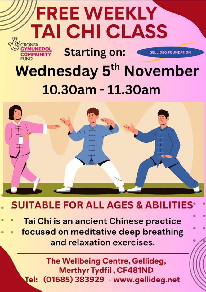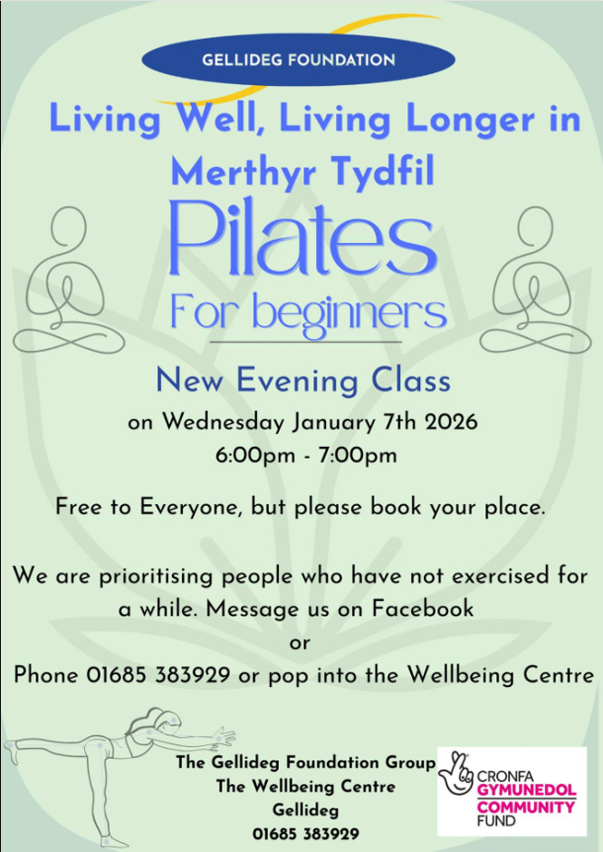 New Evening classes! Free to everyone! Free to everyone< but please book your place. We are prioritising people who have not exercised in a while. Phone 01685 383929 or pop into the wellbeing centre.